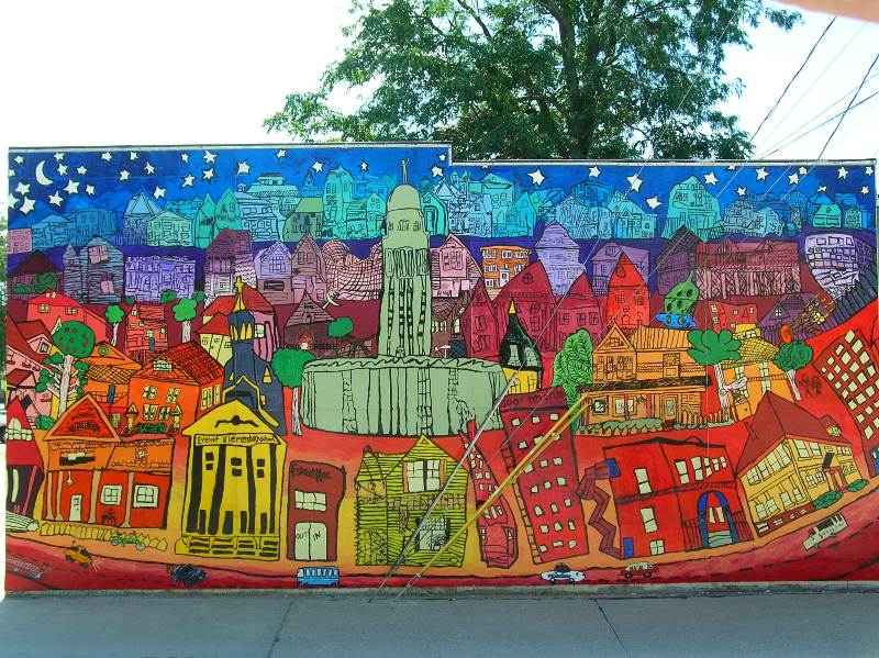 Fun wall murals - they do it to cut down on graffiti and it seems to work.